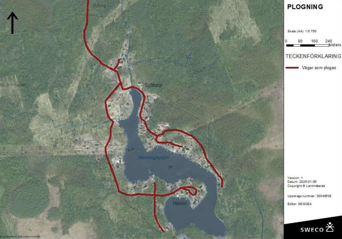 Föreningens avtal med Maserfrakt gällande snöröjning är de vägar som visas på kartan: